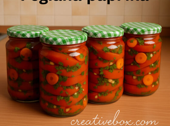 Peglana paprika je jedan od najomiljenijih recepata za zimnicu na Balkanu. Hrskava, kiselo-slatka i aromatična, savršeno se slaže uz svako jelo – pečenje, pasulj, krompir, pa čak i uz doručak sa sirom i kajmakom. Priprema je vrlo jednostavna i najvažnije – bez kuvanja i bez konzervansa osim vinobrana koji čuva svežinu paprika.