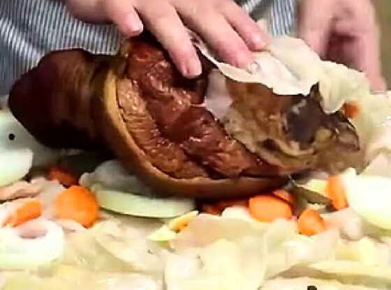 Na kupus staviti dimljenu butkicu i obmotati je listovima kupusa.
