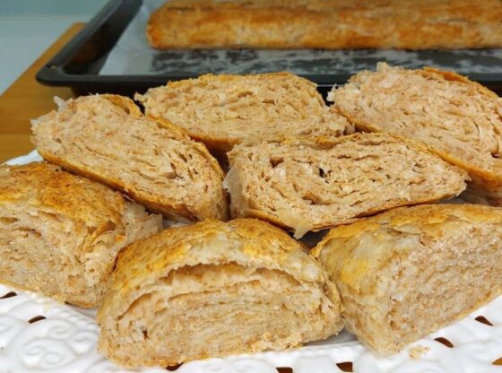 Sve sastojke za fil sjedinite u glatku smesu, premazujte svaku koru, slažite u tepsiju i pecite dok maslanica ne porumeni i ne postane mekana i mirisna.