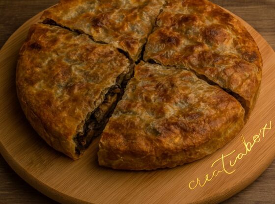 Ova pita priprema se na najjednostavniji mogući način, bez ijedne kapi ulja, a ipak ostaje neverovatno sočna i bogata. Kombinacija kuvanog pirinča, pečuraka i paradajza stvara pun, topao ukus koji podseća na jela iz stare manastirske kuhinje – skromna, a izdašna.