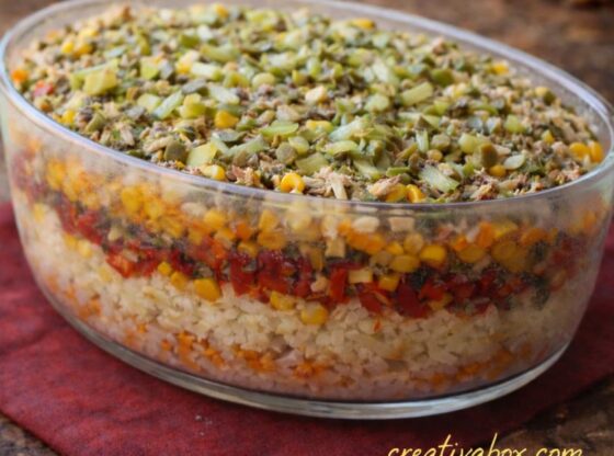 Na kraju poravnati površinu i ostaviti salatu u frižideru najmanje sat vremena da se ukusi sjedine.
