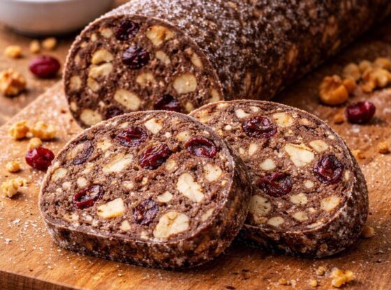 Ako volite kolače koji se prave za tren, a nestanu još brže, ovaj čokoladni rolat su pravi izbor. Kombinacija otopljene čokolade, margarina i keksa, uz orahe i suve brusnice, daje savršeno bogat i hrskavo-sočan zalogaj. Najlepše je što se ne peče, lako se oblikuje u rolate , a posle hlađenja se seče na tanke okruglice koje su idealne za slavlja, praznike i posluženje uz kafu.