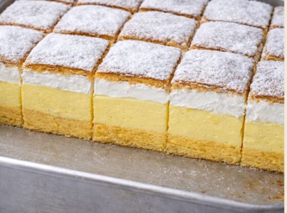 Krempita je jedan od onih kolača koji se uvek vraćaju na sto – jednostavna, kremasta i savršeno osvežavajuća. Ova domaća verzija iz pleha ima mekanu koru, bogat vanila fil sa belancima i lagani šlag na vrhu. Recept je provereno dobar, idealan za veće društvo, slave, rođendane ili nedeljni desert uz kafu.