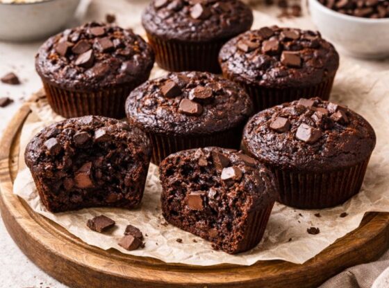 Ako tražite brz, lagan i zdrav desert bez belog šećera i jaja, ovi čokoladni mafini su savršen izbor. Prave se od integralnih brašna, zaslađeni eritritolom, a zahvaljujući kakau i komadićima čokolade imaju bogat, pun ukus. Idealni su za doručak, užinu ili kao lagani slatkiš uz kafu – bez griže savesti.
