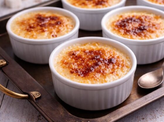 Rerna za koricu: Sipajte sutlijaš u zdjelice (ne moraju biti vatrostalne), poređajte ih u tepsiju i zapecite u rerni na 150°C oko 10 minuta, samo da se uhvati tanka korica.