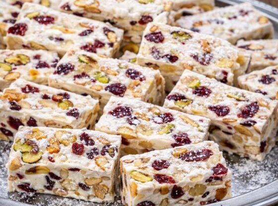 Francuski nougat je jedna od najpoznatijih evropskih poslastica – slatki, mlečno-beli zalogaji puni orašastih plodova koji pucketaju pod zubima. Ova verzija sa zelenim pistaćima, prženim bademima i oguljenim lešnicima daje nougatu bogat ukus i lep izgled. Recept je idealan za praznike, poklone u kutiji, posne/tradicionalne trpeze (bez mleka i putera), ali i kad želite da napravite nešto baš posebno.