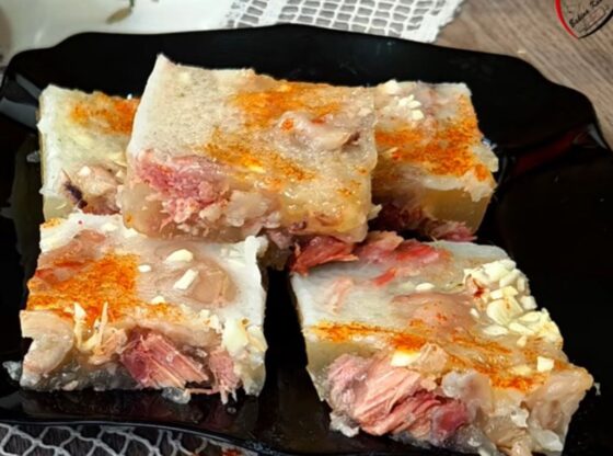 Ove pihtije se prave od svinjskih nogica i mesa koje prirodno puštaju kolagen, pa kad se ohlade dobijete čvrstu, drhtavu strukturu. Uz lovor, biber u zrnu i beli luk – ukus je pun, starinski i “lekovit” u smislu da prija zimi i greje iznutra.