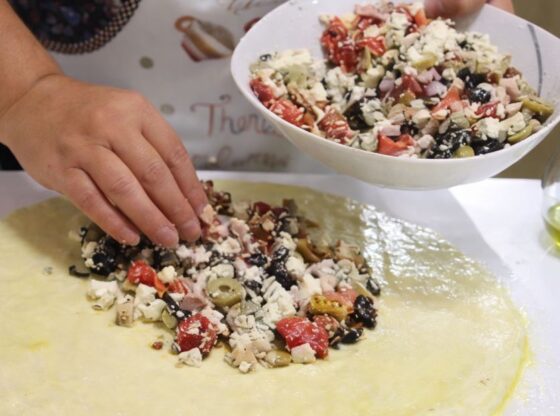 Ako tražite ideju za toplu, domaću i ukusnu večeru, ova punjena pogača bez mešenja je pravi pogodak. Priprema je jednostavna, testo je mekano i vazdušasto, a bogat nadev od feta sira, maslina, slanine i pečenih paprika daje joj poseban ukus. Odlična je za porodični obrok, posluženje gostima ili kao slano pecivo koje svi rado jedu.