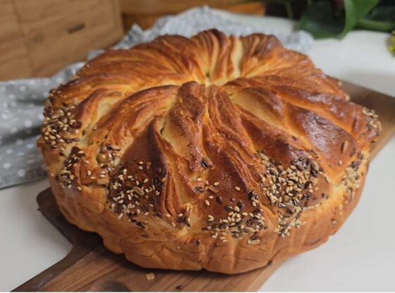 Ova uskršnja pogača pravi se od jednostavnih sastojaka koje već imate u kuhinji, a zahvaljujući mleku, jogurtu i puteru dobija divnu mekanu i vazdušastu strukturu. Slojevi su nežni i lisnati, korica zlatna, a izgled toliko lep da će zauzeti centralno mesto na prazničnoj trpezi.