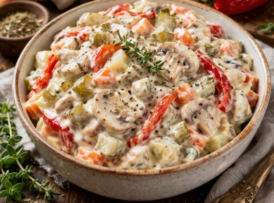 Posna salata sa šampinjonima je savršen izbor za sve koji žele brz, ukusan i zasitan obrok bez mnogo truda. Kombinacija kiselih krastavaca, pečenih paprika, šargarepe i kremastog posnog majoneza daje bogat i osvežavajući ukus. Idealna je za dane posta, slavsku trpezu ili kao prilog uz glavno jelo.