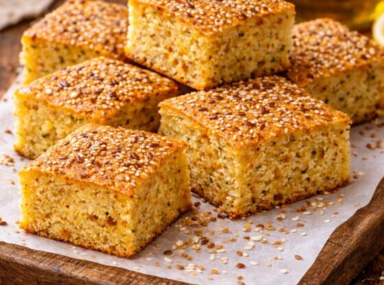 Kada je gotova, ostavite je nekoliko minuta da se prohladi, pa secite na kocke ili poslužite kao mafine.