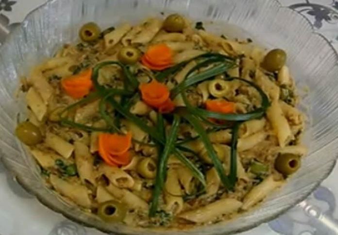 izvor:Kuhinja Valentina Mašković Recept 200gr.obarene makarone 125gr.marinirane sardine 125gr.marinirane skuše sa povrćem 5-6 struka mladog crnog luka 100gr.posnog majoneza So biber miroďija masline Detalje pripreme…