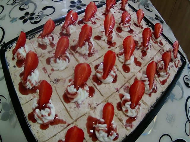 izvor:Kuhinja Valentina Mašković Recept Za biskvit korištene Tortine 10 kom. Fil 700ml.slatke pavlake 400gr.kisele pavlake 100gr.šećera u prahu 10gr.želatina 700gr.jagoda 150gr.jafa keksa 150gr.mlevene plazme. Detalje…