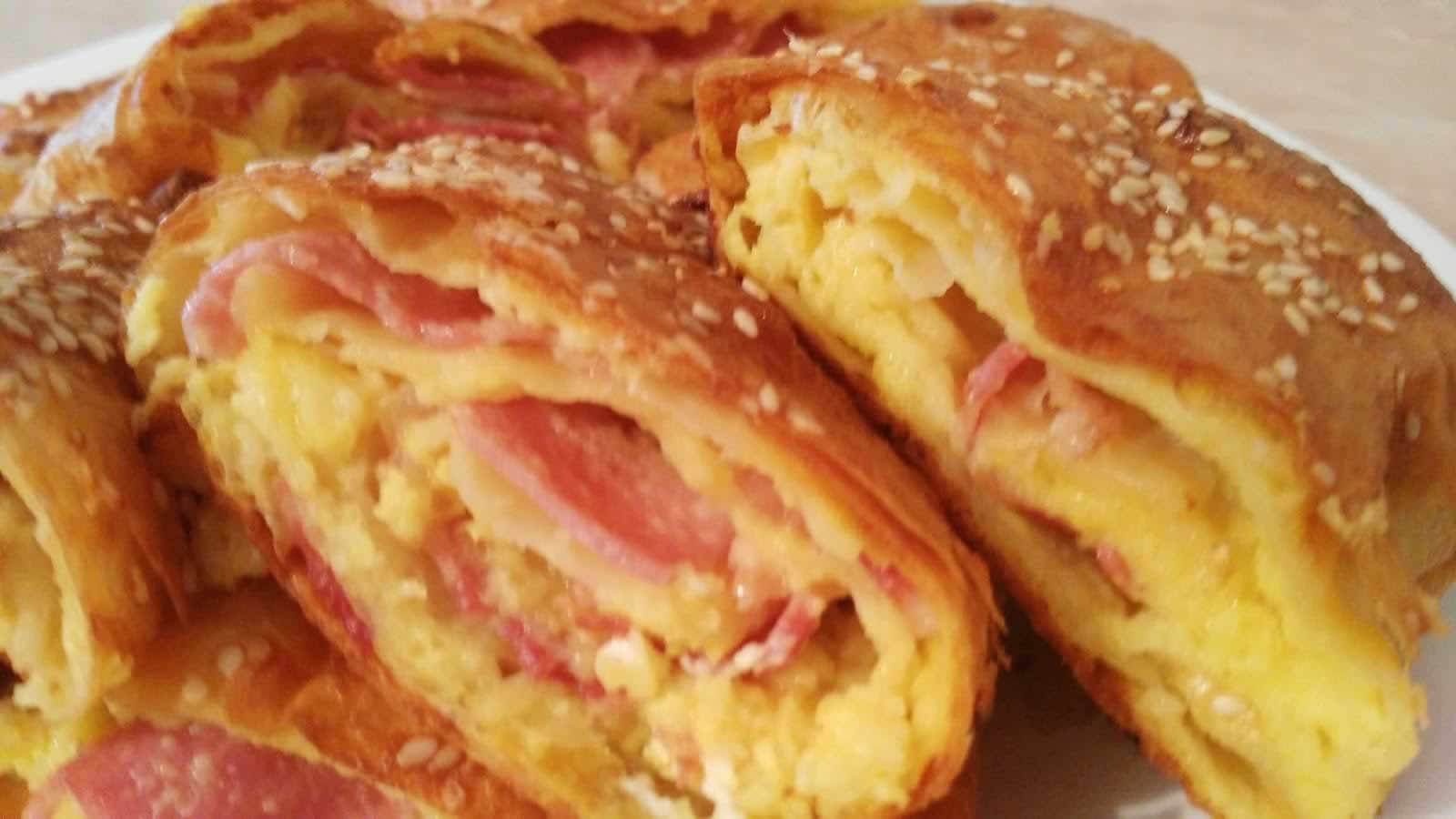 izvot:Milica Mihailović Sastojci: 3 jaja, pola kašike soli, 250 ml jogurta, 300 ml ulja, 200g sira, 200g šunke ili parizera, biber, prašak za pecivo, 8…