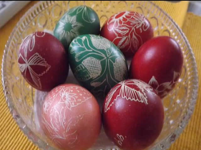 Stari srpski nacin saranja vaskrsnih jaja. Potrebno je prirodni vosak, sveca, vestina. Pogledajte video http://www.youtube.com/watch?v=jKiUlVDYcw8