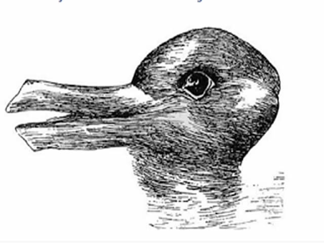 Pojmovi ”patka” i ”zec” pružaju programe koji omogućuju umu da organizira stvarne crte na slici na drugačiji način. Ova poznata optička iluzija može se vidjeti…