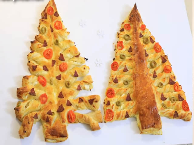 Sastojci i priprema: 500 gr. lisnatog testa, 250 gr. sitnog sira, 1 jaje. Za dekoraciju: malo kobasice, malo čeri paradajza, malo maslina….ili sve što bi…
