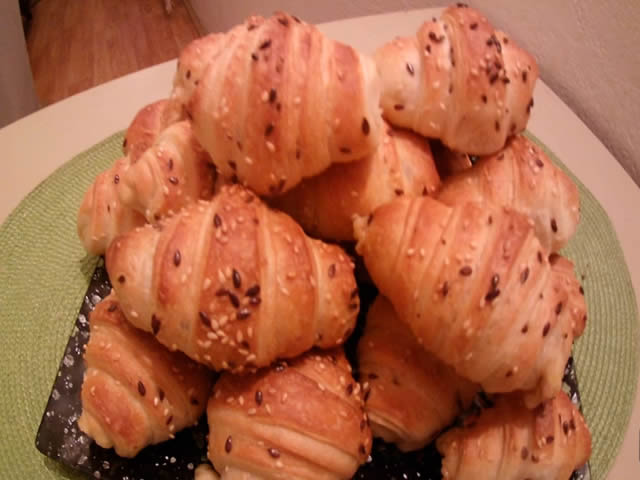Testo: 1kg.brašna 2 kašičice so 1 kašika šećera 1dl.ulje 40gr.kvasca i voda po potrebi. Nadev: 100gr.kikiriki 150gr.gaunda kačkavalj 150-200gr biljnog sojinog sira. Susam i lan.…
