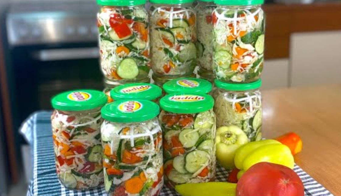 Šarena salata za zimu Sastojci: 2kg kupusa 2 kg paprika 2kg krastavčića 1kg šargarepe Priprema: Povrce iseckati, zatim redjati u sterilisane tegle. I svaku teglu…