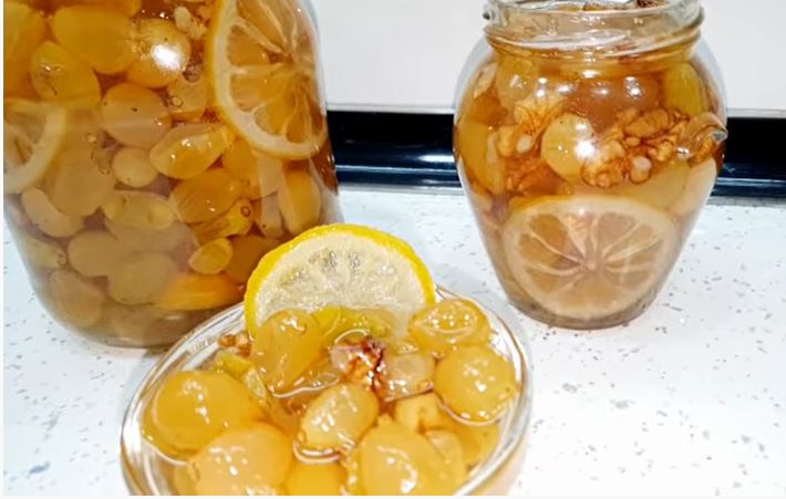 izvor:Bokina kuhinja SASTOJCI: 1 KG OCISCENOG GROZDJA SA PETELJKI 1 KG SECERA 150 ML VODE Detalje pripreme pogledajte u videu: