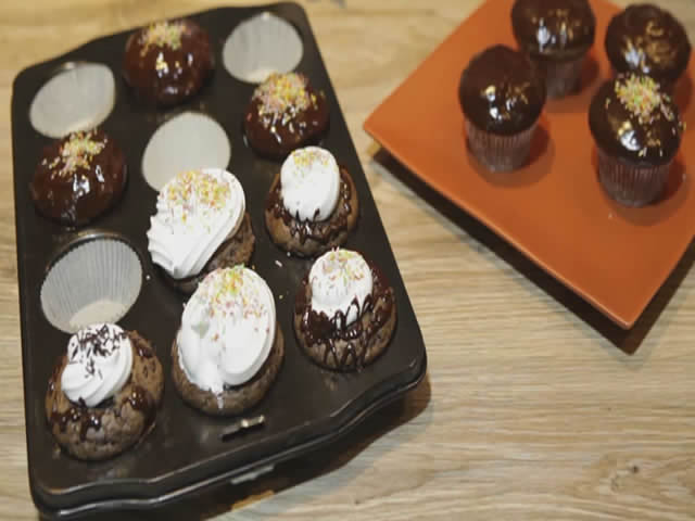 Od sastojaka je potrebno (za 12 komada): 2 bounty čokolade, 100g čokolade za kuvanje, 250g brašna, 2,5 kašike kakao praha, 1 prašak za pecivo, 1/2…