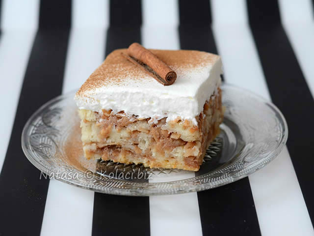 SASTOJCI za TIJESTO: 200 gr brašna, 180 gr šećera, 200 gr griza, 1 prašak za pecivo NADJEV: 1 kg izribanih jabuka, 2 vanilin šećera, 1…