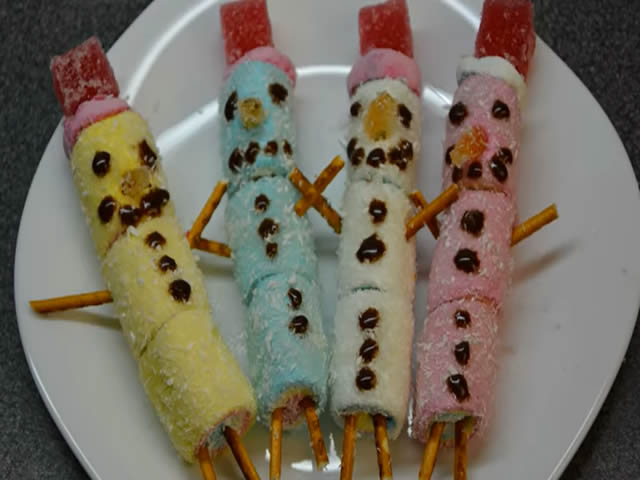 Sastojci: Okrugli keksići, bombonice i perece. Umesto fondana za oči možete staviti dve tačkice čokoladnog krema od margarina. U nastavku se nalazi video sa nacinom…