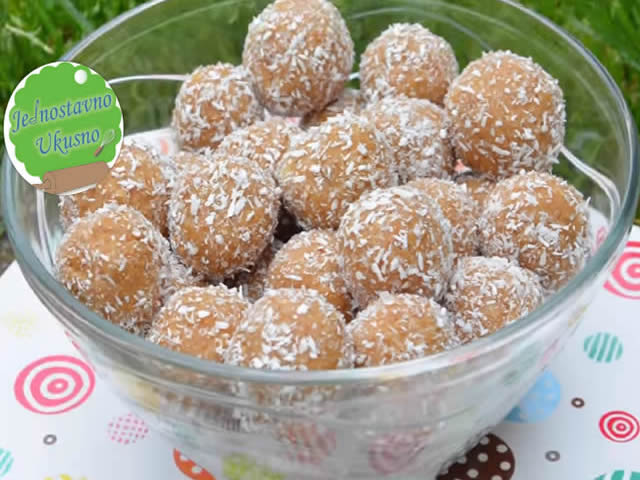 Sastojci: 3 veće ili 4 manje banane, 300 gr mlevenog keksa, 50 gr kokosa, po želji do 100 gr šećera u prahu, 2-3 narendisane štangle…