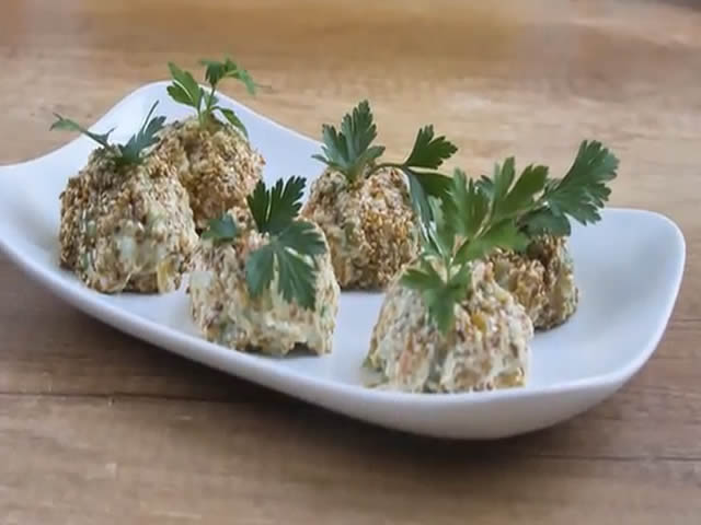 Potrebni sastojci: 200g krompira. 200g šargarepe, 200g kiselih krastavčića, 100g zeleni, 200g graška, 50g susama, maslinovo ulje, svež peršun, Začin C, C biber i Thomy…