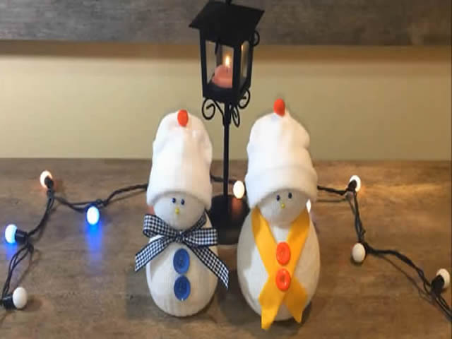 Potrebni materijali: Lepak, bela čarapa, pirinač, beli konac, dugmići, parče tkanina za šal, makaze…. Sledite korake iz video klipa i napravite Sneško od čarape i…