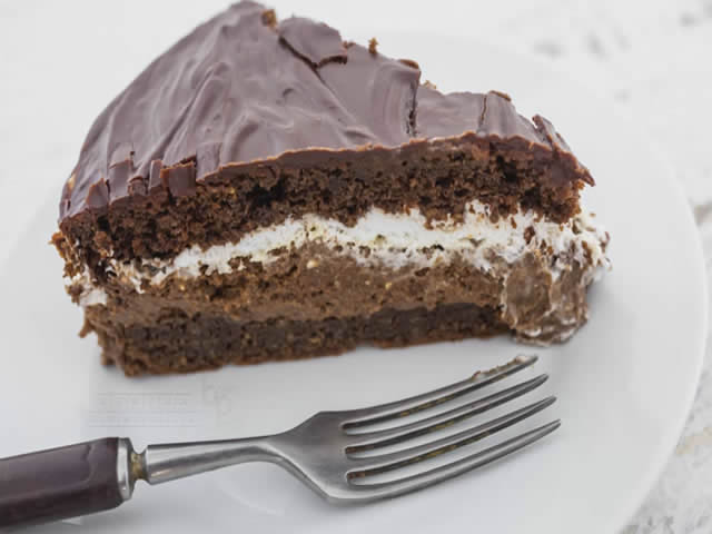 Čokoladna torta – Domaći video recept Sastojci: 10 jaja, 200g šećera u prahu, 1 margarin, 150g mlevenog plazma keksa, 300g otopljene čokolade za kuvanje, 1…
