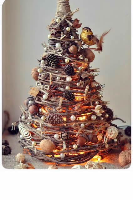 Napravite sami božićnu jelku koje će biti lep ukras za vaš enterijer Za izradu potrebno vam je: Odrezane grane loze, šišarke, žir, orahe, sitne kuglice,…