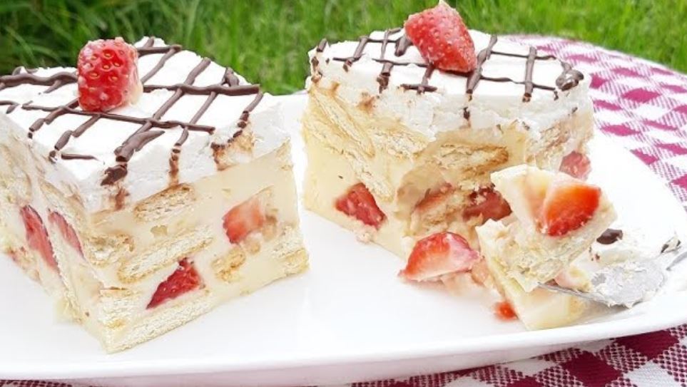 Recept za najlepši kolač sa jagodama. Savršena poslastica za 10 minuta! POTREBNI SASTOJCI: 300 GR KEKSA 3 KESICE PUDINGA OD VANILE-120GR 11 KASIKA SECERA 1…