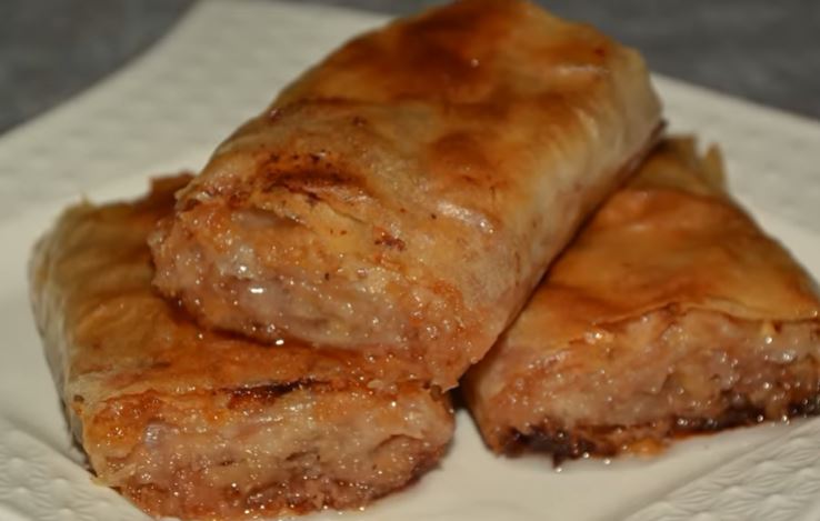 Za fil: 1-1,5 kiselih jabuka suhe kore za pitu (baklavu) 500g 40-50g oraha 2 kašičice cimeta 1 vanilin šećer 2 kašike šećera Za premaz: 250g…