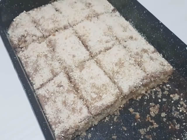 Sastojci: 3 jaja, 3 šoljice šećera, 3 šoljice brašna, 3 šoljice mlevenog keksa, 2 šoljice ulja, 1 prašak za pecivo, 1 šoljica suvog grožđa, 250g…