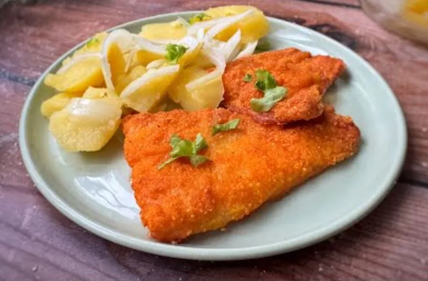 izvor:Serpica Recepti Recept za najednostavniju krompir salatu koja najbolje ide uz ribu, i naravno recept za ukusnu ribu iz rerne. Krompir salata: – 1,500 gr.…