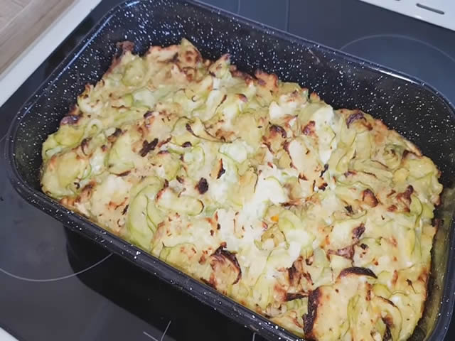 slika: Milica Mihailović Sastojci: 4 srednje tikvice isecene na kolutove, brasno, oko 300g, 3 jaja, solja pirinca, glavica crnog luka, oko 600 ml mleka, so,…