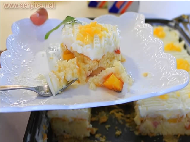 slika:Serpica Sastojci i priprema: 600 gr. nektarina, 4 jaja, 200 gr. šećera, 1 vanilin šećer, 6 kašika ulja, 9 kašika vrele vode, 250 gr. brašna,…