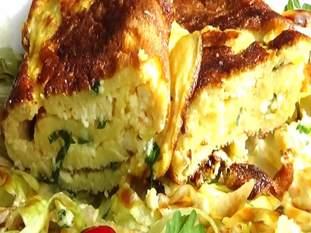 Namirnice za tiganj od 28 cm precnika: 3 jaja, 3 kasike mleka, 2 kasike kravijeg sira, 1 kasika svezeg persuna, so, biber curry po ukusu.…