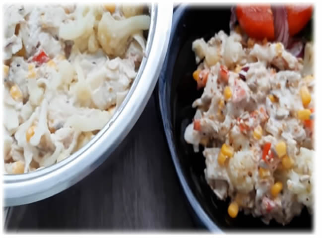 izvor:kodbakeugostima.blogspot Potrebno je: 200 gr testenine 150 gr majoneza posnog 1 kašičica senfa 150 kukuruza šećerca 200 gr karfiola 1 veća crvena paprika 1 paprika…