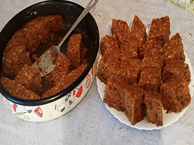 izvor:Bebina kuhinja Sastojci: 200g margarina (posni), 100g šećera, 5 kašika meda, 100g čokolade za kuvanje (posne) ili 5 kašika kakaa, šaka seckanih oraha, 150g prženog…