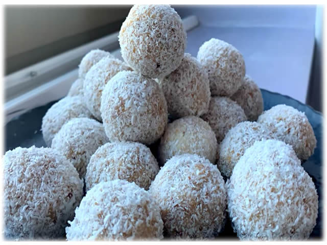 izvor:CooKing Uksune i lagane kuglice od kokosa, griza, lešnika i keksa, koje se pripremju za čas. Umesto vode možete koristiti kokosovo, sojino, bademovo ili neko…