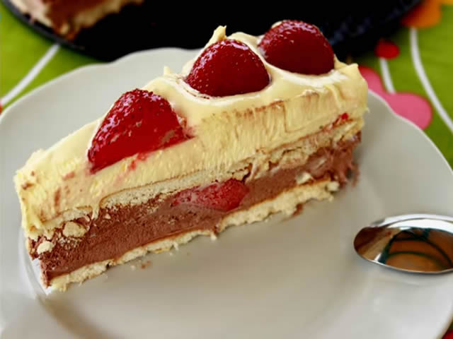 Potrebno: 400 gr. petit keksa, 800 gr. jagoda, 180 gr. šlag-krem od vanile, 180 gr. šlag-krem od čokolade, 2 šolje mleka u prahu, 1 šolja…