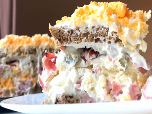 izvor:CooKing SASTOJCI: 12 kriski Tost Hleba 3-4 Kuvana Jaja 3-4 Kisela Krastavca 400 ml Kisele Pavlake 200 ml Majoneza 150 g Sunke 100 g Prsute…