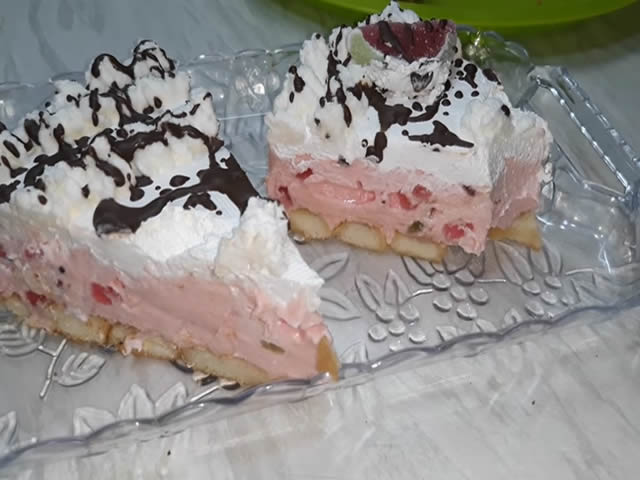 izvor:Bokina kuhinja Sastojci: 2oo gr piskota Krem: 1l mleka, 9 kasika secera, 3 pudinga od jagode, 125 gr margarina, 50gr secera u prahu za margarin,…